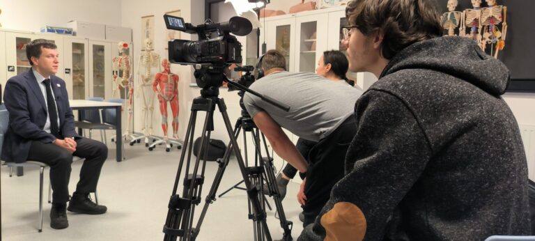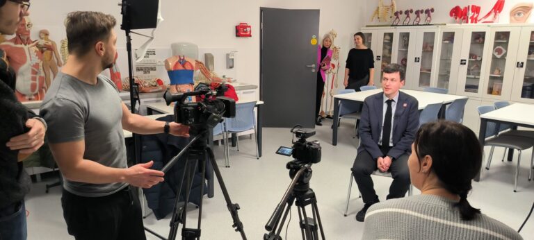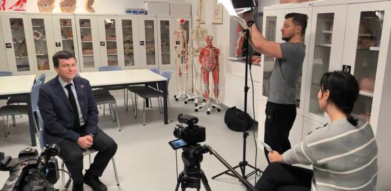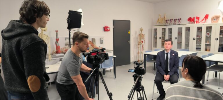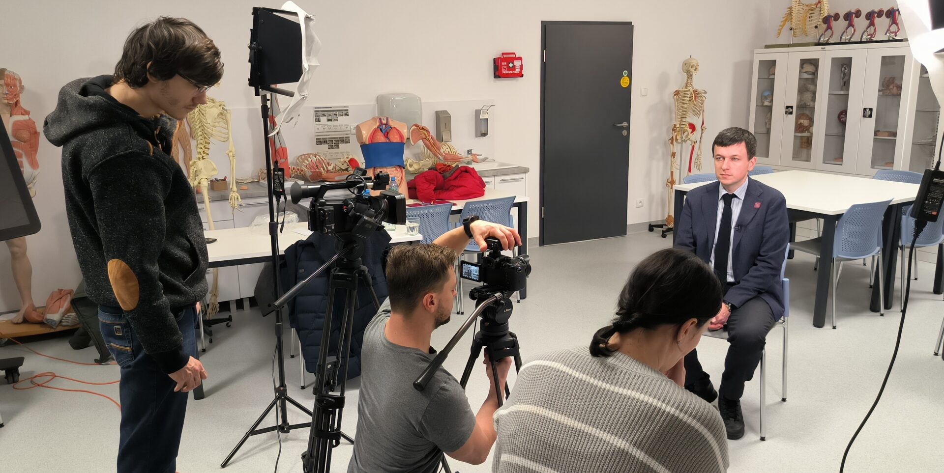 Pan profesor przedstawia uczelnię jako ciekawą propozycję dydaktyczną z dużym potencjałem naukowym i indywidualnym podejściem do studenta. Zachęca też widzów do rozpoczęcia nauki na uczelni, która kształtując młodych ludzi przygotowuje ich do pracy lekarza.