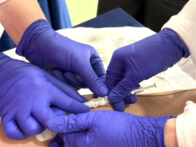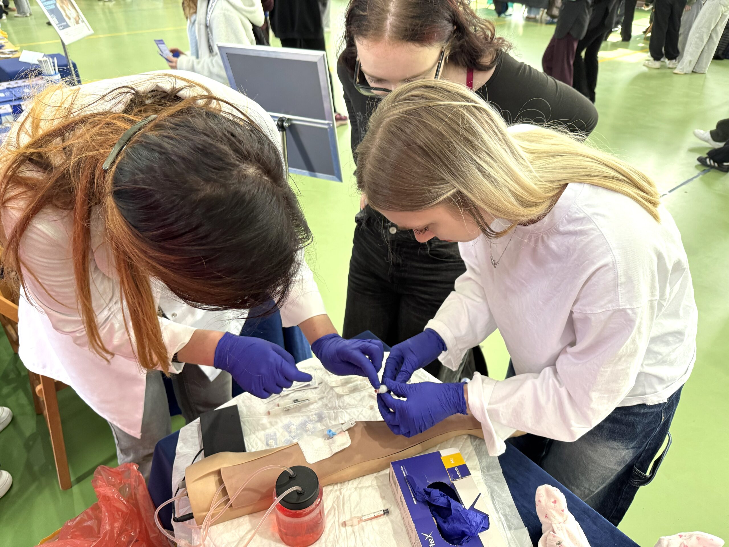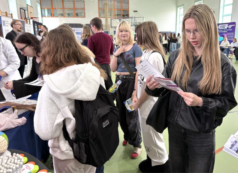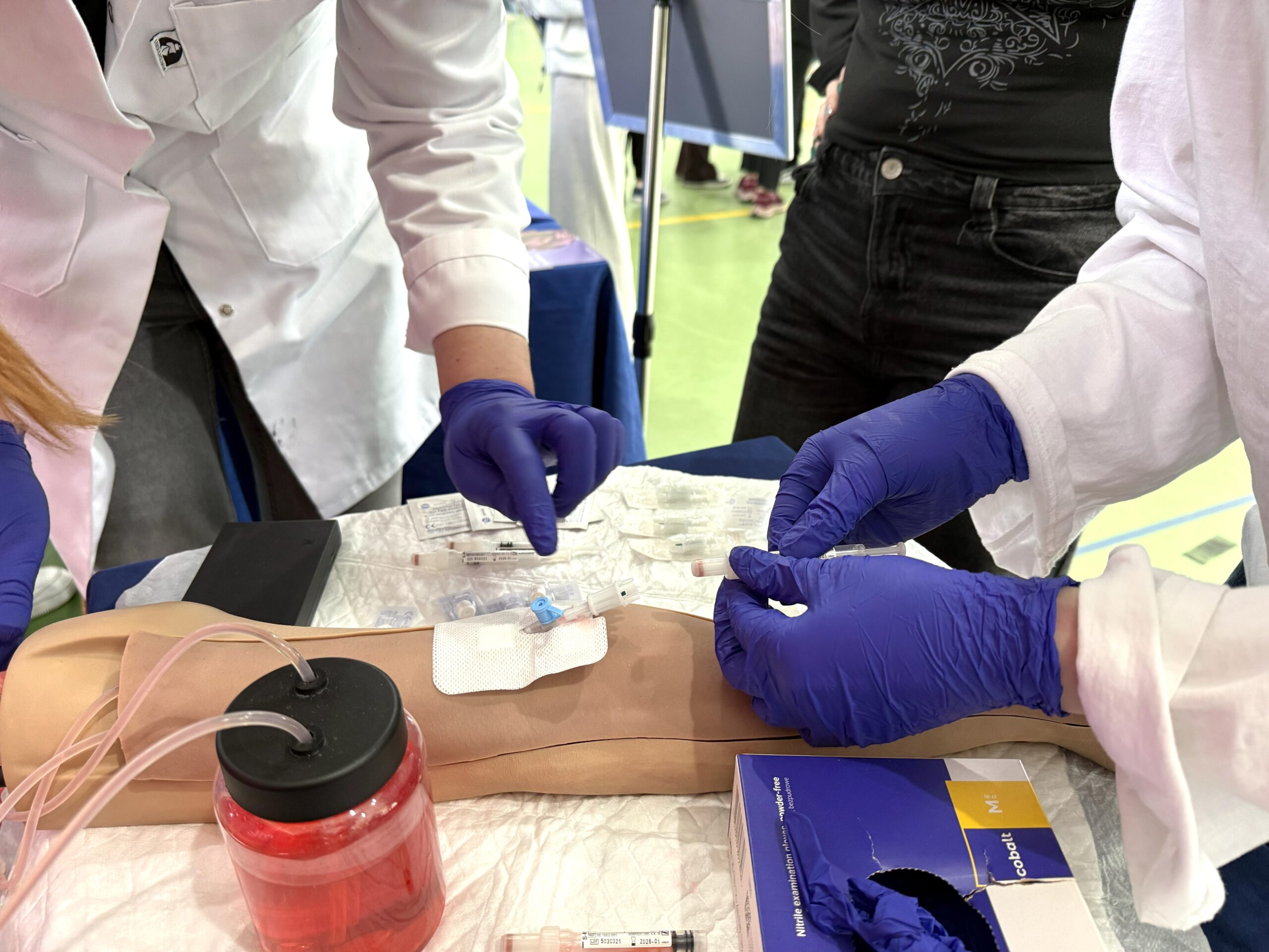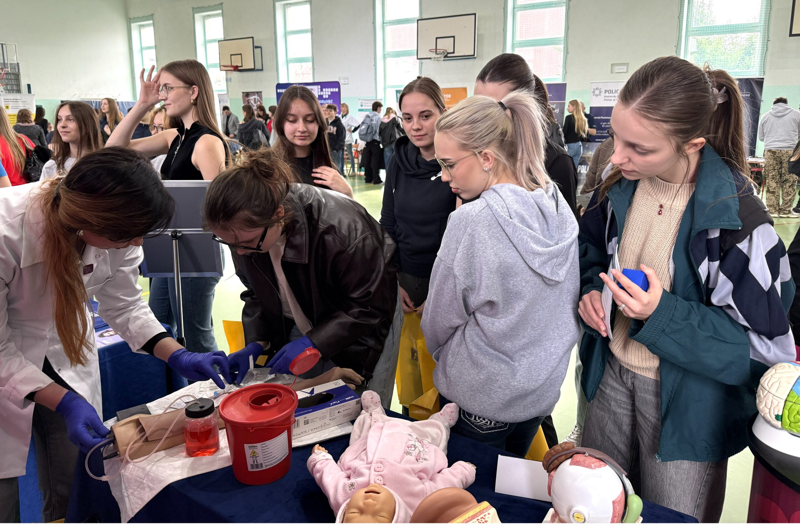 Dodatkową atrakcją były warsztaty z pobierania krwi, które cieszyły się dużym zainteresowaniem uczestników. Dzięki nim młodzież mogła nie tylko poznać praktyczne aspekty pracy w zawodach medycznych, ale również zobaczyć, jak wyglądają zajęcia realizowane na naszej Uczelni.