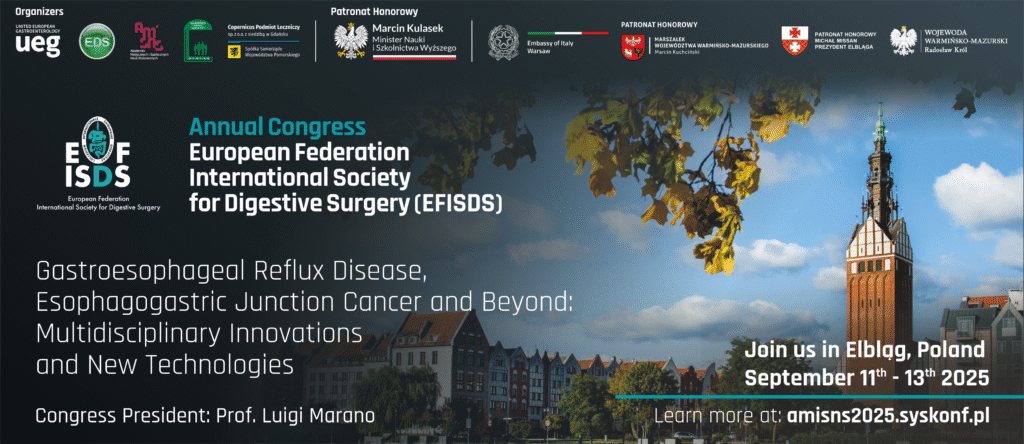 W dniach 11–13 września 2025 roku Akademia Medycznych i Społecznych Nauk Stosowanych w Elblągu będzie gospodarzem prestiżowego wydarzenia naukowego – EFISDS Annual Congress 2025, organizowanego wspólnie z Europejską Federacją Międzynarodowego Towarzystwa Chirurgii Przewodu Pokarmowego (EFISDS). Wydarzenie zgromadzi ekspertów z całego świata i stanie się przestrzenią do prezentacji najnowszych osiągnięć, wymiany wiedzy oraz dyskusji nad przyszłością leczenia chorób układu pokarmowego. Trwają zapisy na to wydarzenie.