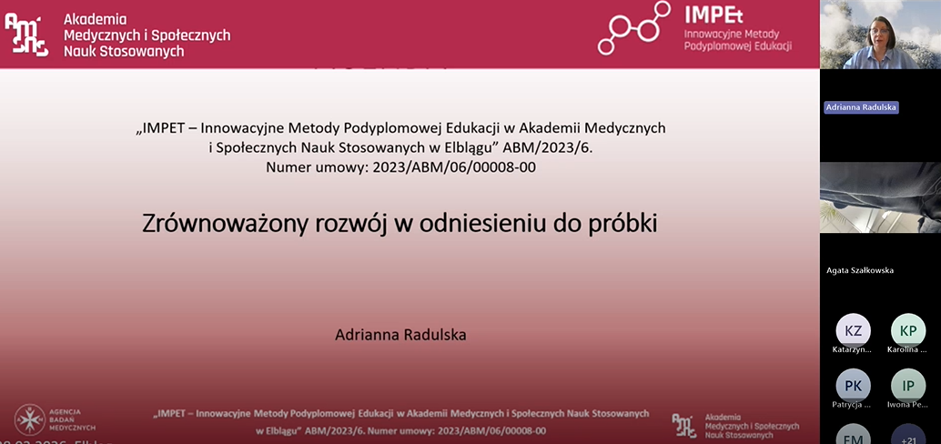IMPEt – Innowacyjne Metody Podyplomowej Edukacji w Akademii Medycznych i Społecznych Nauk Stosowanych finansowany z budżetu państwa w ramach konkursu Agencja Badań Medycznych.