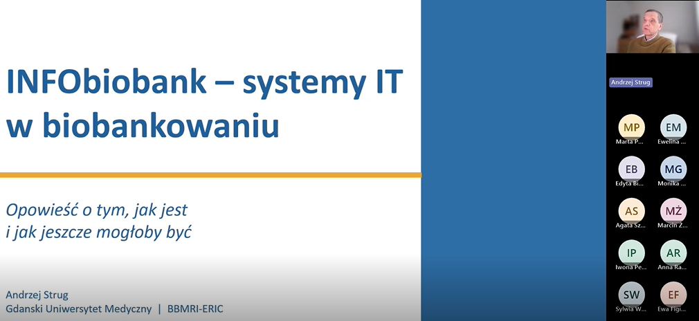 - „INFObiobank – Biobankowanie danych. Gromadzenie danych zagregowanych i rozproszonych, BBMRI‑ERIC i europejskie podejście do danych”, prowadzony przez mgr inż. Andrzeja Struga, przybliżający europejskie standardy zarządzania danymi biomedycznymi.