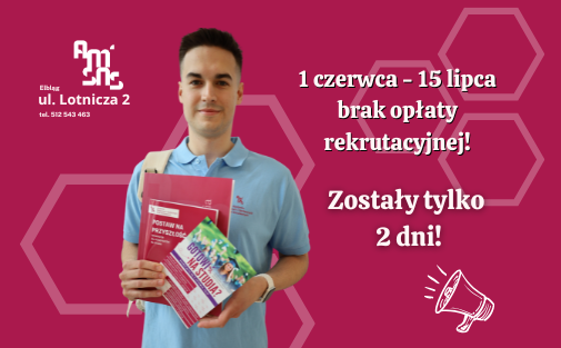 Jeszcze tylko dziś i jutro nie pobieramy opłaty rekrutacyjnej. Skorzystaj z promocji i dopełnij formalności rekrutacyjnych.
