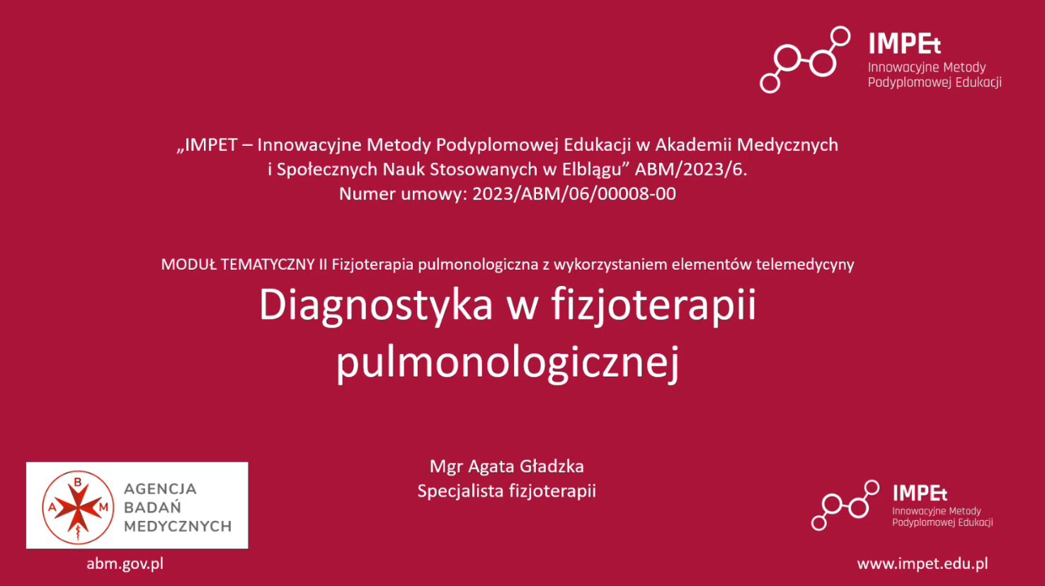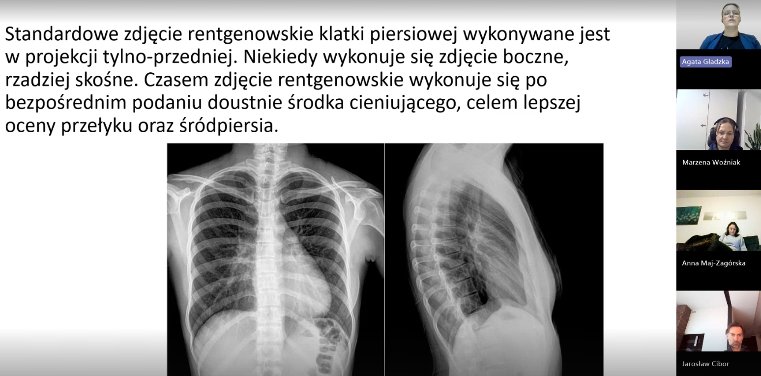 W ramach II edycji bezpłatnych studiów podyplomowych „Fizjoterapia w końcowej fazie życia pacjentów z niewydolnością oddechową w warunkach domowych z wykorzystaniem narzędzi telemedycznych (FIZJO)” odbyły się zajęcia z diagnostyki w fizjoterapii pulmonologicznej, prowadzone przez mgr Agatę Gładzką.