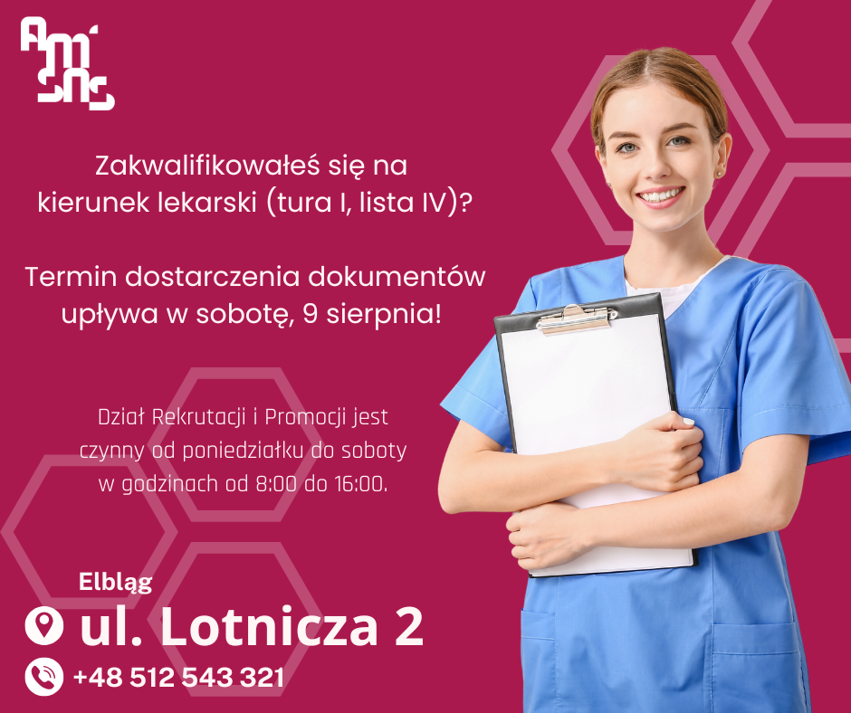 Jeśli znalazłeś się na liście osób przyjętych na kierunek lekarski opublikowanej 5 sierpnia – gratulacje! Przypominamy – do soboty, 9 sierpnia, masz czas na dopełnienie kilku ważnych kroków.