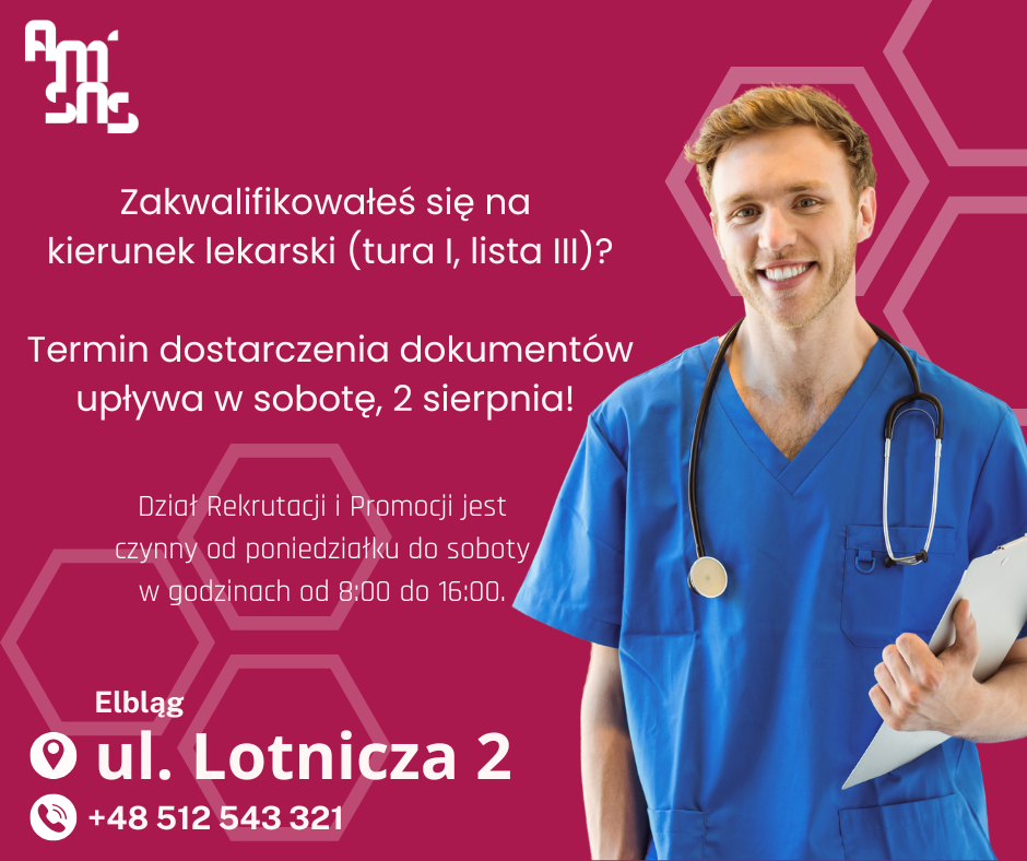 Jeśli znalazłeś się na liście osób przyjętych na kierunek lekarski opublikowanej 29 lipca – gratulacje! Przypominamy – do soboty, 2 sierpnia, masz czas na dopełnienie kilku ważnych kroków.