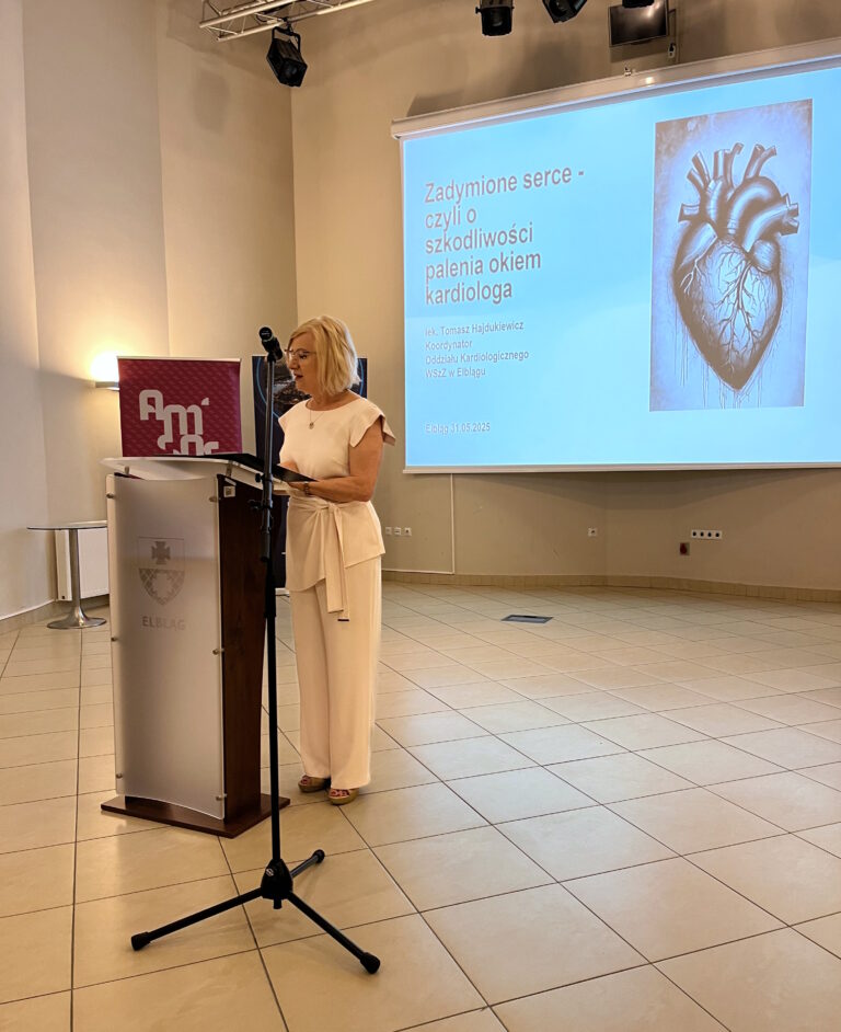 Część wykładową otworzył lek. med. Tomasz Hajdukiewicz, kardiolog i kierownik Oddziału Kardiologii WSzZ w Elblągu. W prelekcji „Zadymione serca, czyli o szkodliwości palenia okiem kardiologa” zwrócił uwagę na dramatyczne konsekwencje palenia tytoniu dla układu sercowo-naczyniowego. Prywatnie miłośnik kolarstwa i zdrowego trybu życia, podkreślał znaczenie profilaktyki jako najskuteczniejszej formy leczenia.