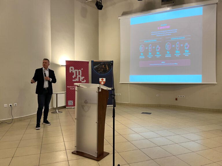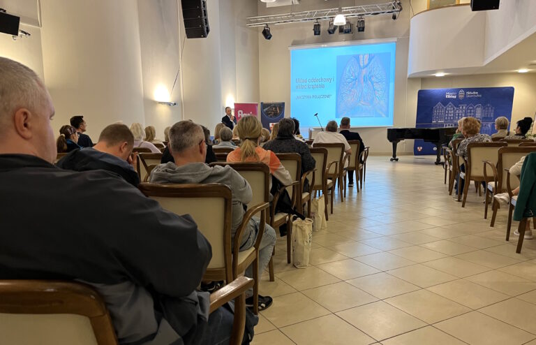 O wpływie środowiska na nasze zdrowie mówiła dr n. med. Magdalena Zakrzewska, specjalistka chorób wewnętrznych, alergologii i immunologii klinicznej, obecnie koordynatorka Oddziału Alergologiczno-Pulmonologicznego w WM Centrum Leczenia Chorób Płuc w Olsztynie. W wykładzie „Zanieczyszczenia powietrza a zdrowie” poruszyła temat alergii, nadwrażliwości i chorób wywoływanych przez toksyczne elementy codziennego otoczenia. Jako pasjonatka medycyny i zdrowego stylu życia, zachęcała do uważności i świadomych wyborów.