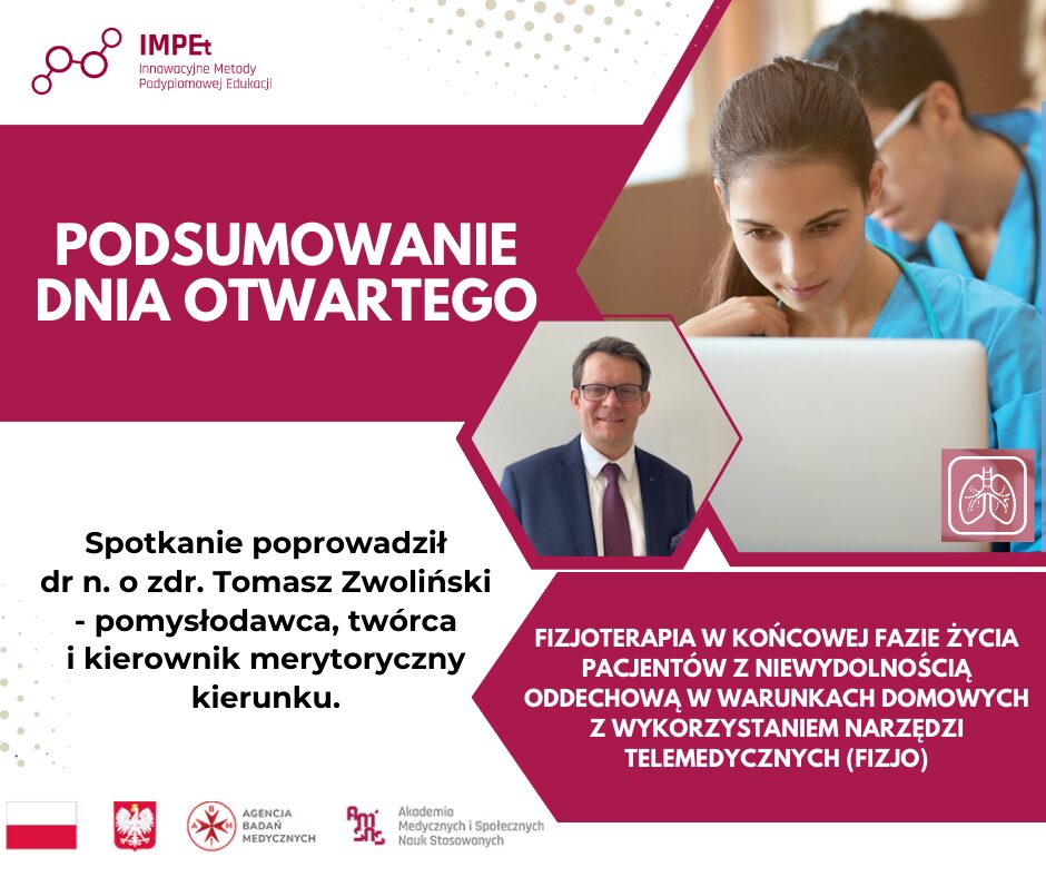 Na kilka dni przed Dniem Otwartym dr Tomasz Zwoliński udzielił wywiadu, w którym szczegółowo opowiedział o założeniach nowopowstałego kierunku FIZJO. Wywiad obfituje w informacje dotyczące kluczowej tematyki kształcenia, m.in. technik masażu niezbędnych w opiece domowej, wykorzystaniu narzędzi telemedycznych czy umiejętność opieki nad pacjentem niewydolnym oddechowo. Doktor Tomasz Zwoliński zwrócił uwagę na rosnące zapotrzebowanie na specjalistów, co jeszcze bardziej podnosi wartość tego kierunku edukacyjnego.