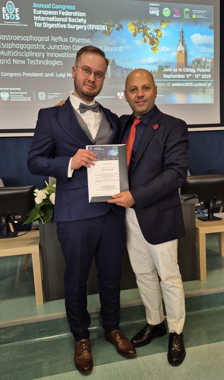 W ramach EFISDS Annual Congress 2025 odbyła się prestiżowa sesja Young Surgeon Awards, dedykowana młodym chirurgom i rezydentom. Była to wyjątkowa okazja, aby zaprezentować innowacje, osiągnięcia badawcze i postępy kliniczne w dziedzinie chirurgii przewodu pokarmowego.