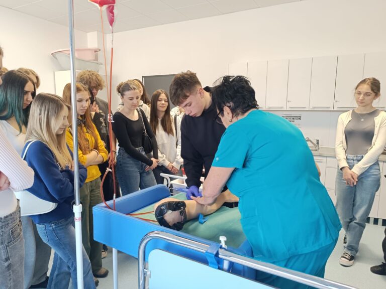 Ostatnim punktem było zwiedzanie Centrum Dydaktyki i Symulacji Medycznej, podczas którego uczniowie mogli zobaczyć, jak wygląda nauka medycyny z bliska. To inspirujące doświadczenie mogło przekonać niektórych z nich do rozważenia kariery w tej dziedzinie.