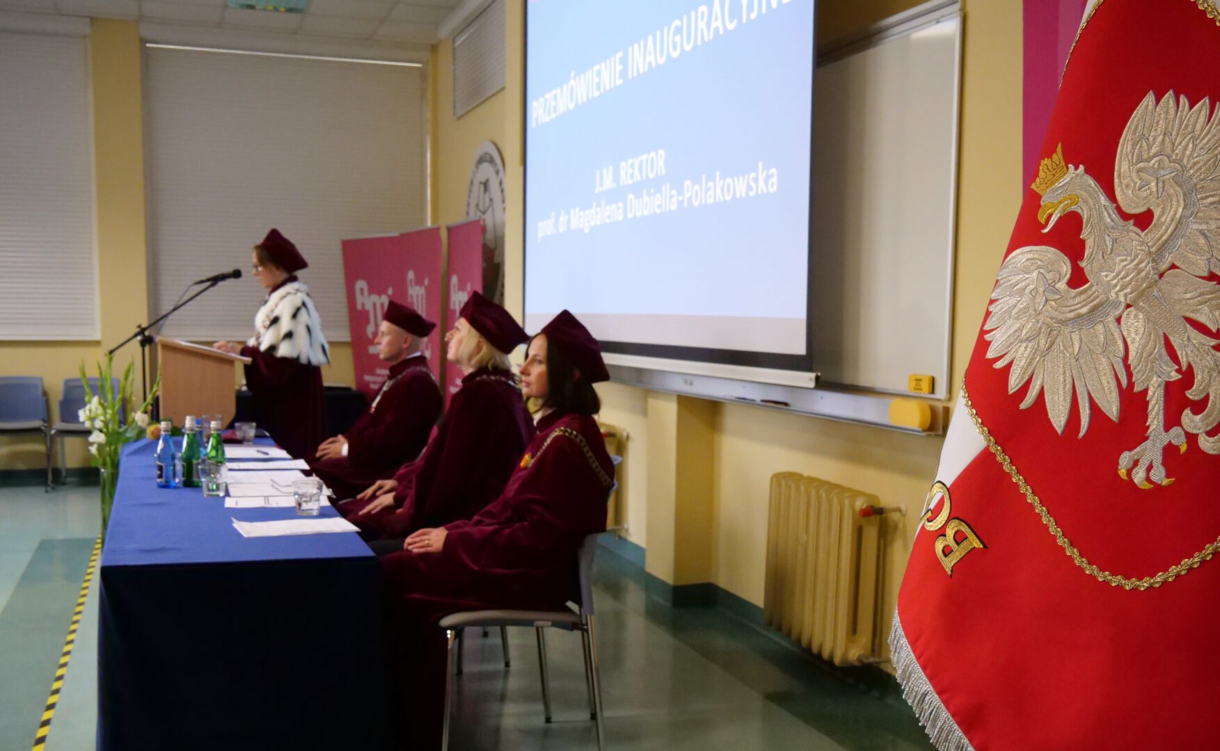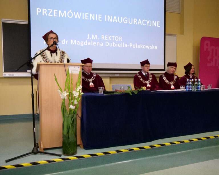 Podczas Inauguracji Pani Rektor AMiSNS, prof. Uczelni dr Magdalena Dubiella-Polakowska, wygłosiła przemówienie otwierające rok akademicki.