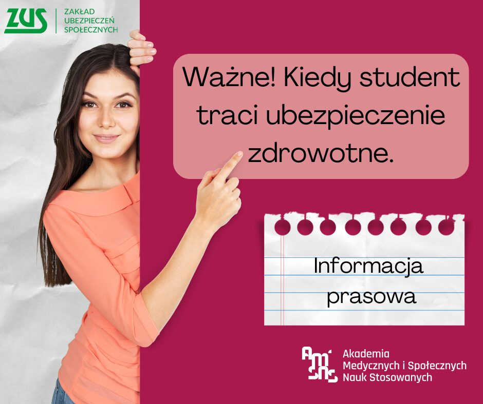 Informacja prasowa Zakładu Ubezpieczeń Społecznych – kiedy żak traci ubezpieczenie zdrowotne