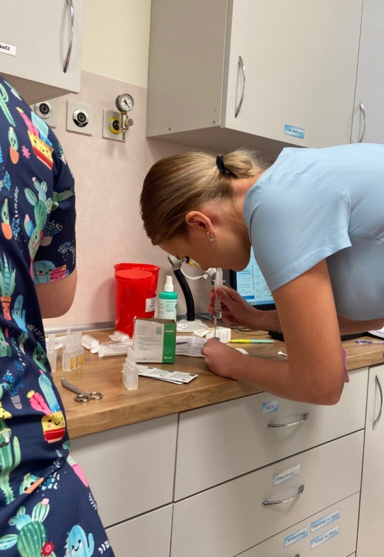 Jedną z osób, które podzieliły się swoim doświadczeniem z praktyk, jest Pani Kinga – studentka drugiego roku kierunku pielęgniarstwo. Jej refleksja w szczególny sposób ukazuje emocjonalny i zawodowy wymiar tych zajęć: