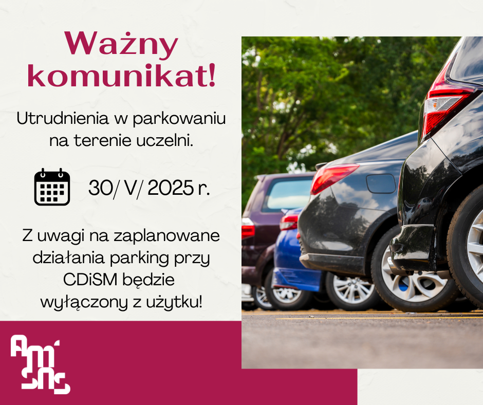 W tym dniu prosimy o korzystanie z pozostałych dostępnych miejsc parkingowych na terenie kampusu. Zmiana ta ma na celu zapewnienie sprawnej organizacji wydarzenia oraz bezpieczeństwa uczestników i gości.