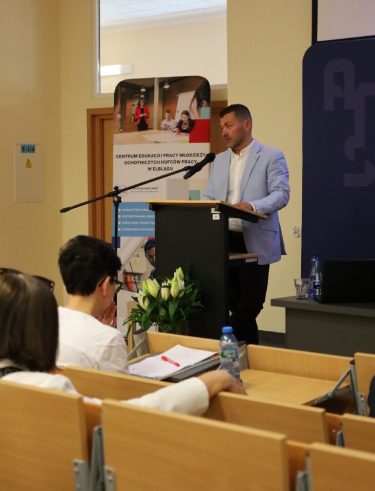 Nie zabrakło także tematów związanych z wyłączeniem społecznym. Pani Iwona Klim, Dyrektor Centrum Edukacji i Pracy Młodzieży OHP w Elblągu, przedstawiła działania Ochotniczych Hufców Pracy, które przeciwdziałają wykluczeniu społecznemu młodzieży. Z kolei mgr Marzena Żachowska opowiedziała o lasoterapii jako wsparciu zdrowia psychicznego młodych ludzi, co wzbudziło spore zainteresowanie wśród uczestników.