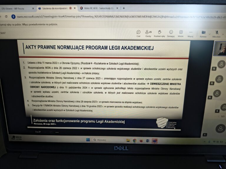 9 maja 2025 r. odbyła się wideokonferencja zorganizowana przez Ministerstwo Obrony Narodowej, poświęcona realizacji VIII edycji programu Legia Akademicka.