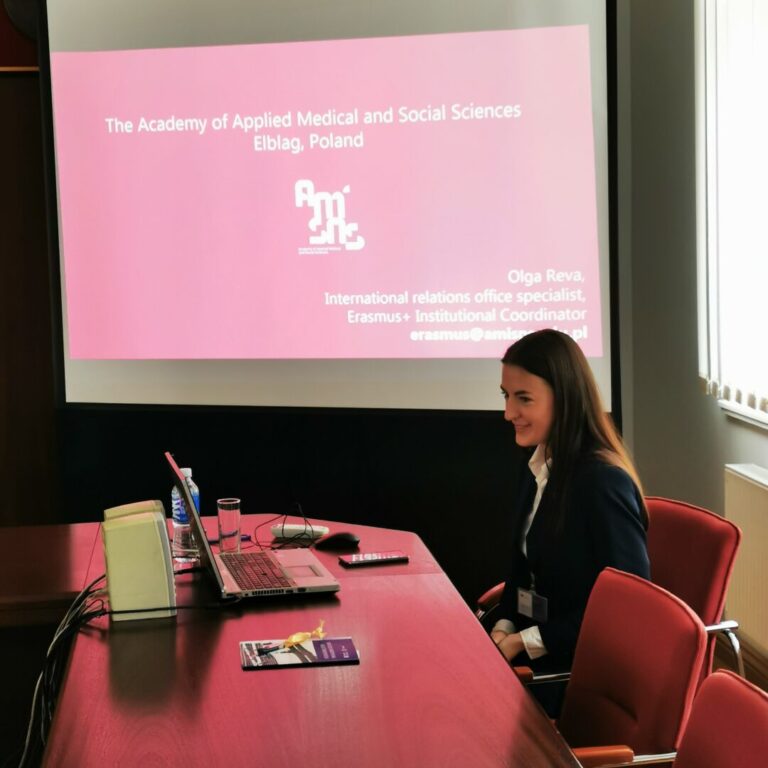 Reprezentująca naszą uczelnię, Specjalista ds. Współpracy Międzynarodowej i Uczelniany Koordynator Programu Erasmus+, Pani mgr Olga Reva, oprócz udziału w szkoleniu, odbyła szereg spotkań z władzami uczelni, kadrą akademicką i administracyjną, podczas których poruszone zostały tematy dotyczące obszarów przyszłej współpracy pomiędzy Akademią Medycznych i Społecznych Nauk Stosowanych a Uniwersytetem Kłajpedzkim.