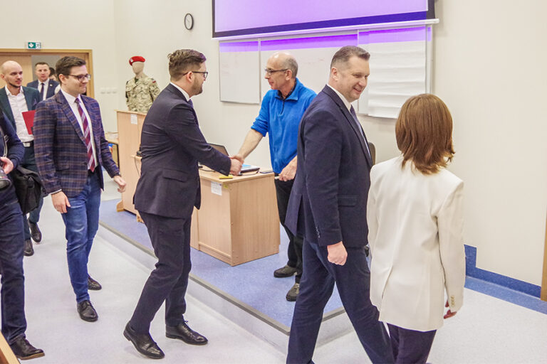 W środę 15.03.2023 r. Minister Edukacji i Nauki Przemysław Czarnek odwiedził naszą Akademię, gdzie spotkał się ze studentami, społecznością akademicką i odwiedził Centrum Dydaktyki i Symulacji Medycznej. Oglądając nasze zaplecze dydaktyczne i nowoczesny sprzęt, który umożliwia studentom zdobywanie wiedzy w praktyce, w warunkach maksymalnie zbliżonych do tych, które spotykają później w swojej pracy, utwierdził się w przekonaniu, że lekarzy w AMiSNS kształcimy na najwyższym poziomie.