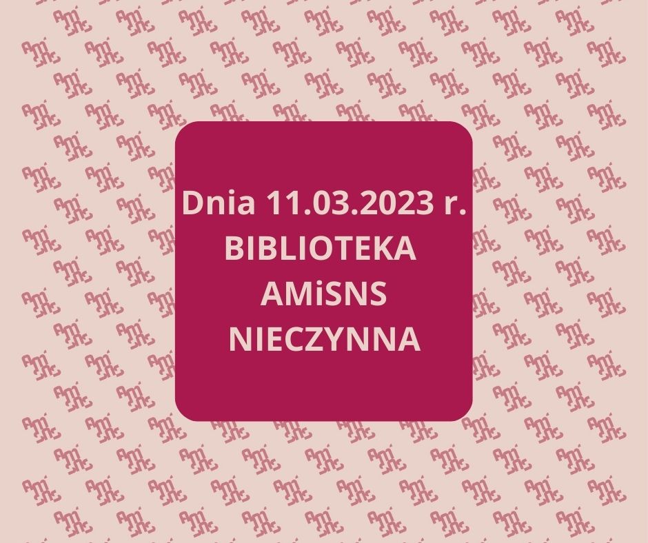 W dniu 11.03.2023 r. Biblioteka Akademii Medycznych i Społecznych Nauk Stosowanych będzie nieczynna. Przed wejściem stoi skrzynka na zwrot książek.