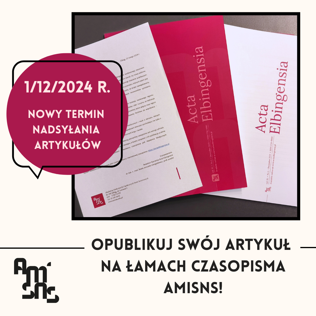 Gorąco zapraszamy do współpracy z czasopismem „Acta Elbingensia”, wydawanym przez naszą uczelnię. Uwaga! Termin nadsyłania artykułów został wydłużony do 1 grudnia 2024 r.
