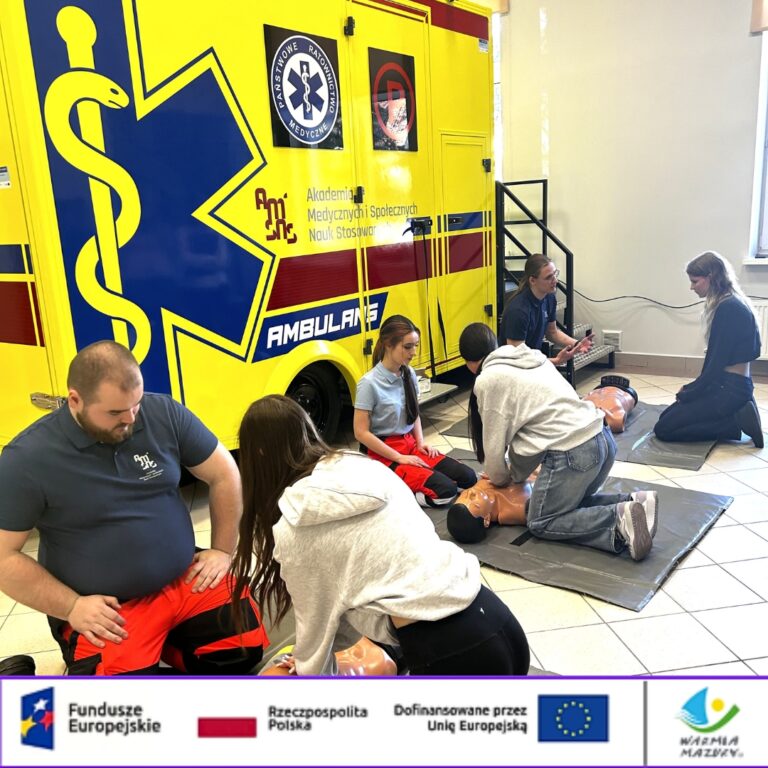 Projekt „Zakup Urządzeń Dydaktycznych dla Kształcenia Praktycznego Kadr Medycznych” realizowany jest przy wsparciu Funduszy Europejskich dla Warmii i Mazur 2021–2027 oraz Europejskiego Funduszu Rozwoju Regionalnego.