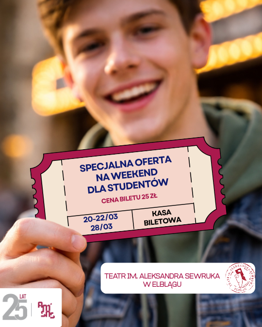 Aby skorzystać z promocji, bilety należy nabyć wyłącznie stacjonarnie w kasie biletowej teatru, okazując ważną legitymację studencką.