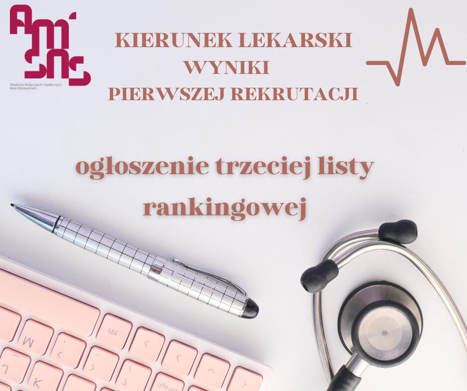 Ogłoszenie trzeciej listy rankingowej pierwszej rekrutacji – kierunek lekarski, rok akademicki 2024/25