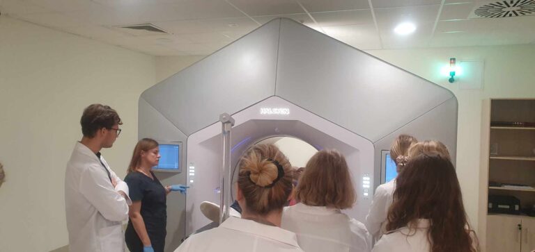 Studenci zostali zapoznani z badaniami obrazowymi i przygotowaniem unieruchomień osobistych. Zostały im przybliżone zagadnienia fizycznego planowania badania i wrysowywania narządów krytycznych u pacjentów onkologicznych. Ostatnim etapem spotkania było omówienie samego procesu terapeutycznego.