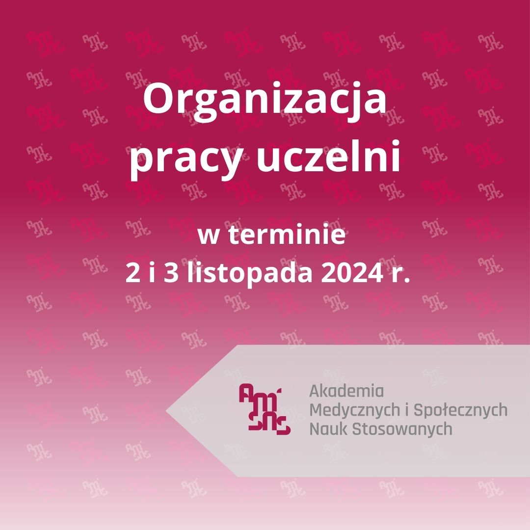 02.11.2024 r. (sobota) i 3.11.2024 r. (niedziela) Dziekanat Wydziału Nauk o Zdrowiu, Dziekanat Wydziału Administracji i Nauk Społecznych, Biblioteka, Dział Rekrutacji i Promocji oraz Dział IT będą zamknięte.