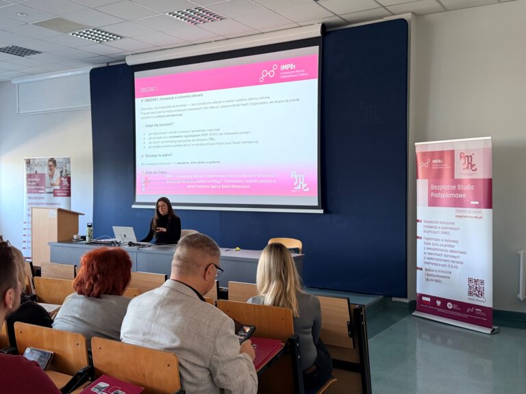 Spotkanie miało charakter wprowadzający – pojawiło się wiele kluczowych definicji oraz uporządkowanie podstawowych pojęć związanych z innowacjami w ochronie zdrowia. Równie ważnym elementem była integracja uczestników – studenci mieli przestrzeń, by się poznać oraz wymienić doświadczeniami zawodowymi i refleksjami dotyczącymi wdrażania innowacji.