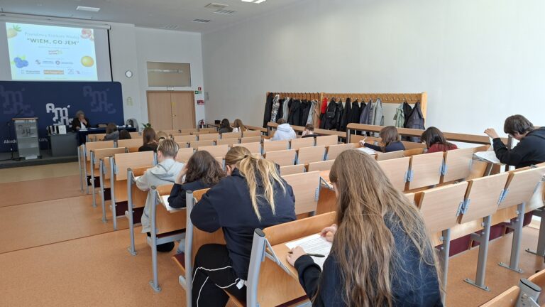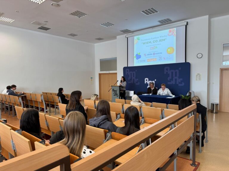 W dniu 13 kwietnia 2026 r. w murach Akademii Medycznych i Społecznych Nauk Stosowanych odbył się Powiatowy Konkurs Wiedzy „Wiem, co jem”, zorganizowany przez Państwowego Powiatowego Inspektora Sanitarnego w Elblągu w ramach ogólnopolskiego programu edukacyjnego #TrzymajFormę. Konkurs skierowany był do uczniów klas VII–VIII szkół podstawowych z Elbląga oraz powiatu elbląskiego.