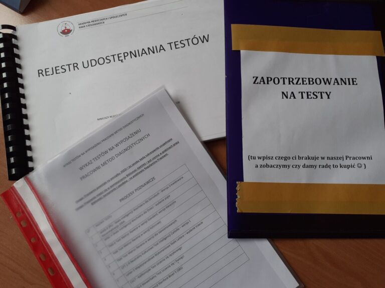 Pracownia Metod Diagnostycznych działająca przy kierunku psychologia wzbogaciła się o nowe pozycje testowe, wśród których znajduje się m.in.