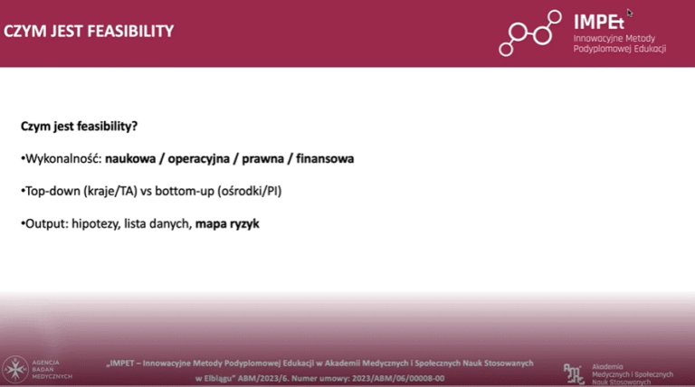 IMPEt – Innowacyjne Metody Podyplomowej Edukacji w Akademii Medycznych i Społecznych Nauk Stosowanych finansowany z budżetu państwa w ramach konkursu Agencja Badań Medycznych.