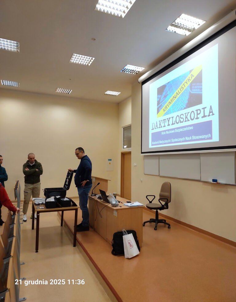 21 grudnia 2025 r. studenci Koło Naukowe Bezpieczeństwo działającego przy Wydziale Administracji i Bezpieczeństwa zorganizowali prelekcję poświęconą specyfice pracy eksperta kryminalistyki.