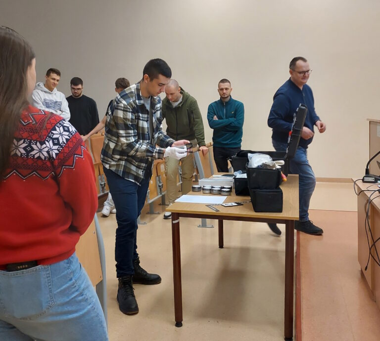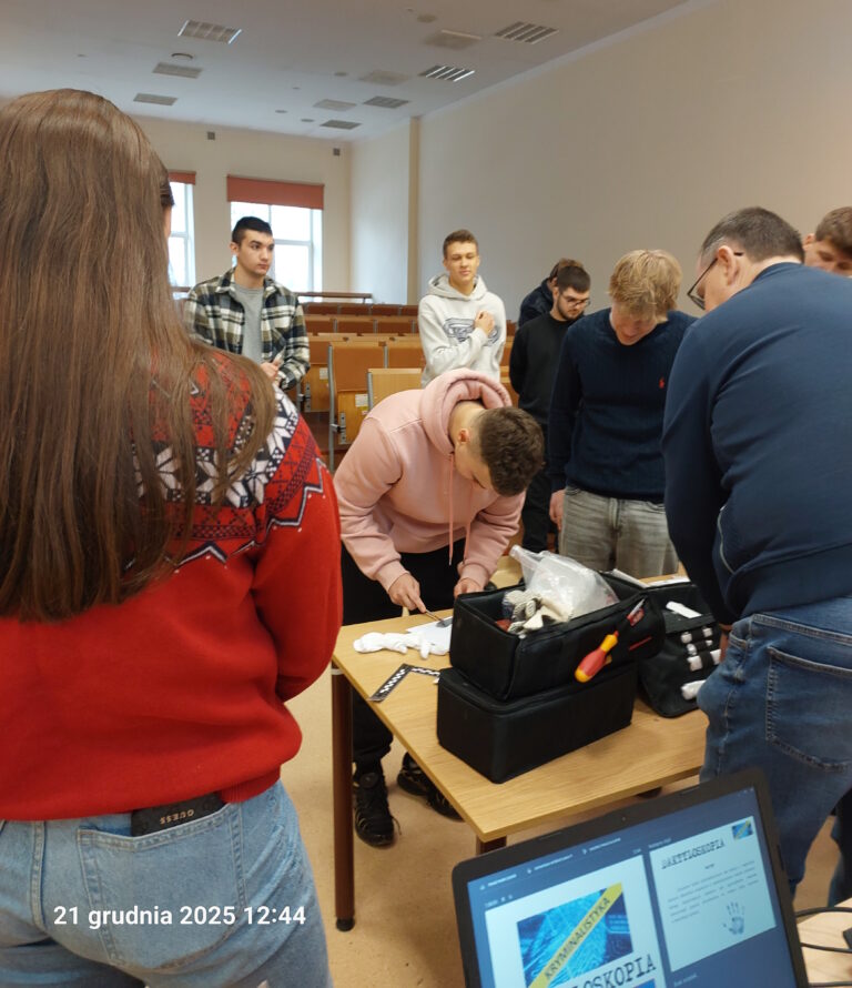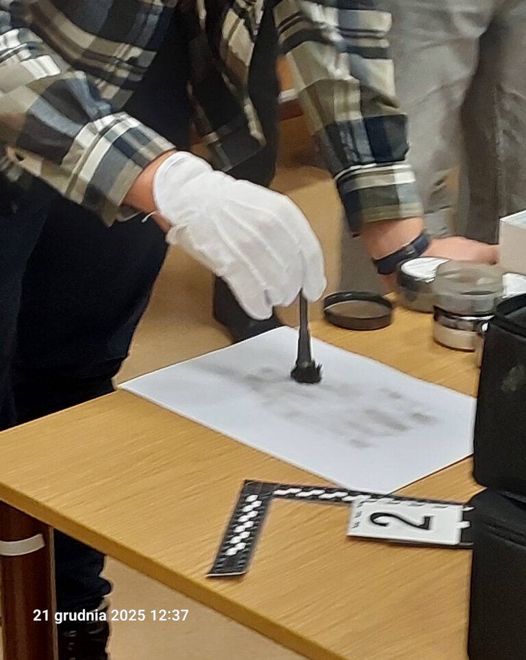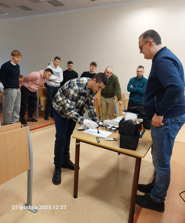 Istotnym elementem wydarzenia była część warsztatowa, podczas której członkowie Koła mieli możliwość samodzielnego wykonania czynności z zakresu daktyloskopii, mechanoskopii oraz traseologii. Zajęcia praktyczne pozwoliły studentom lepiej zrozumieć znaczenie prawidłowego zabezpieczania i analizy śladów w procesie wykrywczym.