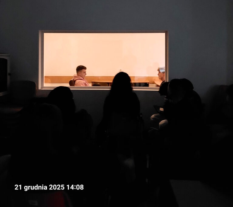 Ponadto zorganizowano prelekcję z wykorzystaniem sali fokusowej, w trakcie której studenci wzięli udział w zaimprowizowanych spotkaniach prywatnego detektywa z klientami. Ćwiczenie to umożliwiło rozwijanie kompetencji komunikacyjnych oraz analizę problemów z perspektywy pracy operacyjnej.