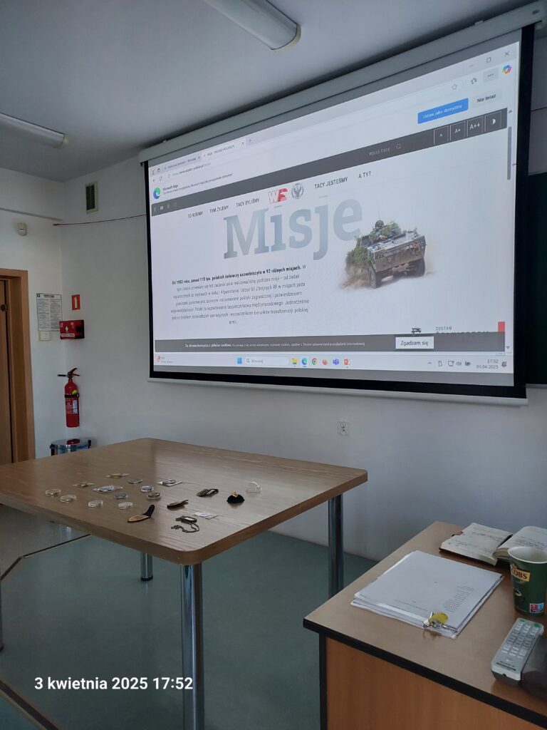 Prelekcji towarzyszyła prezentacja autentycznych materiałów fotograficznych dokumentujących służbę żołnierzy RP w różnych częściach świata. Pokaz zdjęć spotkał się z dużym zainteresowaniem uczestników, wzbogacając przekaz o wymiar osobisty i praktyczny.