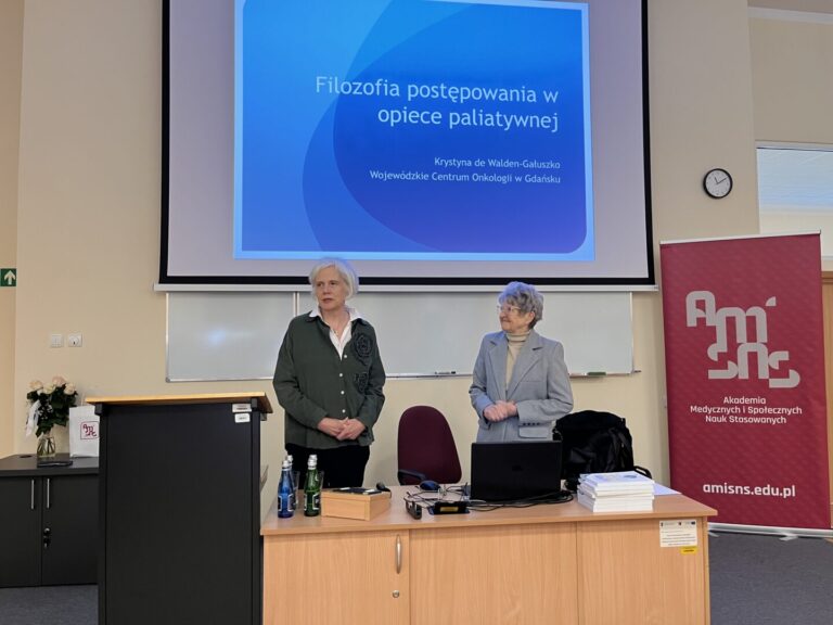 Serdecznie dziękujemy Pani Profesor Krystynie de Walden-Gałuszko za poprowadzenie tak wartościowego wykładu. Spotkanie było wyjątkową okazją, aby zgłębić kluczowe aspekty opieki paliatywnej i zrozumieć złożoność potrzeb pacjentów w tak delikatnym okresie ich życia.