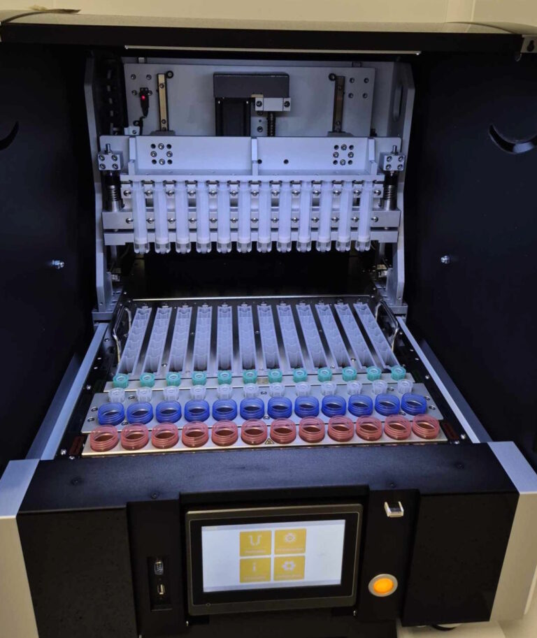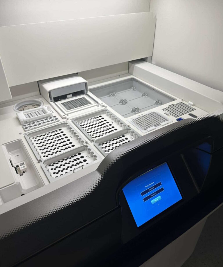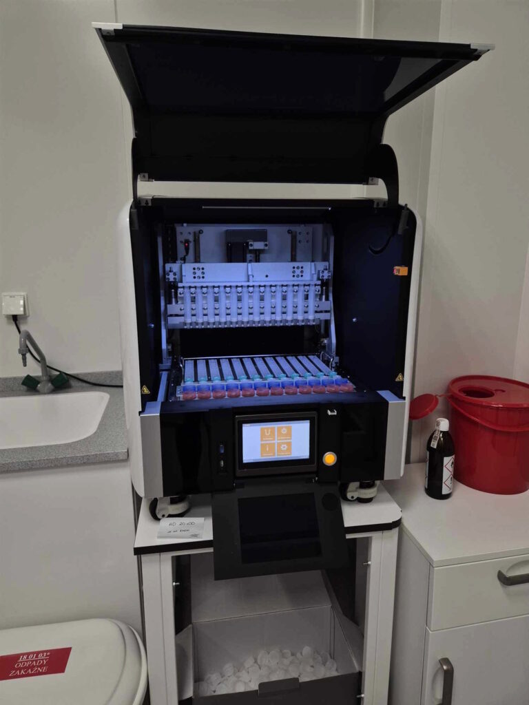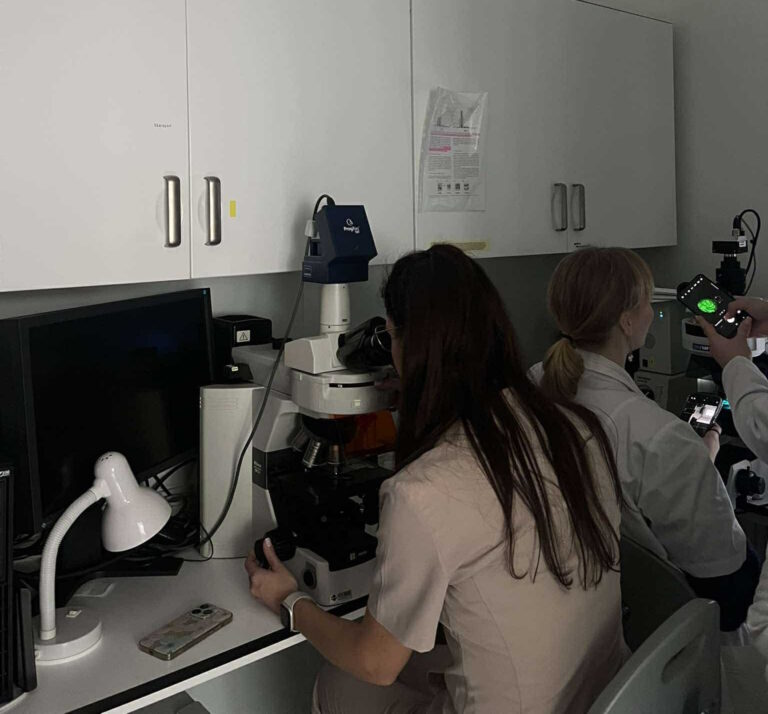 Dzięki uprzejmości kierownika zakładu, Pani prof. dr hab. n. med. Marzeny Lewandowskiej, uczestnicy mogli zapoznać się z zaawansowanymi metodami diagnostycznymi, takimi jak FISH (hybrydyzacja in situ) i NGS (sekwencjonowanie nowej generacji). Dodatkowo, studenci mieli możliwość zobaczenia nowoczesnej aparatury wykorzystywanej do tych procedur, co było niezwykle inspirującym edukacyjnym doświadczeniem.