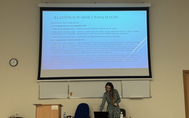 Spotkanie było niezwykle wartościowe, a dzięki ogromnej wiedzy i doświadczeniu Pani Iwony Pogorzelskiej uczestnicy mieli okazję poszerzyć swoje kompetencje w pracy z dziećmi z wadami słuchu. Było to ważne i inspirujące wydarzenie, które z pewnością zostanie zapamiętane przez studentów jako istotny element ich kształcenia.