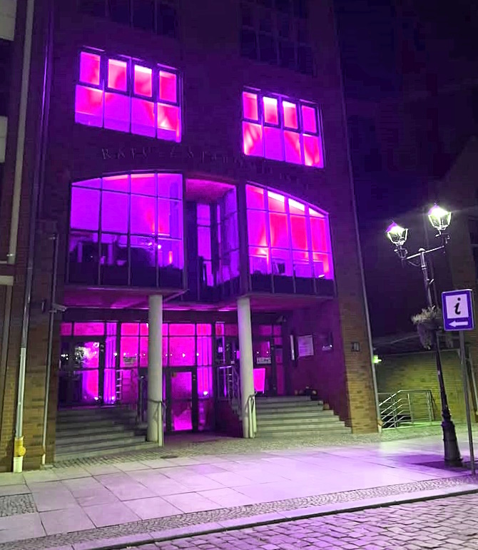 Ważnym symbolicznym akcentem było również podświetlenie Ratusza Staromiejskiego w Elblągu na różowo, dzięki uprzejmości władz miasta.