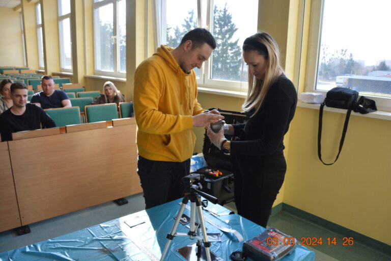 W dniu 03.03.2024 r. Koło Naukowe Bezpieczeństwo zorganizowało zajęcia praktyczne na temat zabezpieczania śladów daktyloskopijnych, mechanoskopijnych oraz traseologicznych.