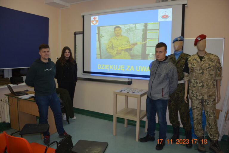 W dniu 17.11.2023 r. studenci Koła Naukowego Bezpieczeństwo zorganizowali prelekcję na temat: „Udział Sił Zbrojnych RP w misjach poza granicami kraju”.