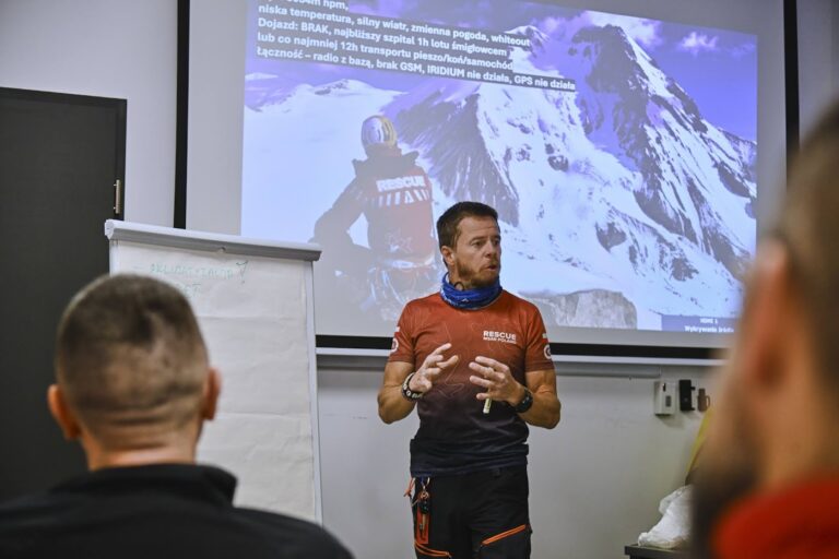 W pierwszej części Pan Marcin Błeński, koordynator projektu Bezpieczny Kazbek oraz właściciel Medyk Rescue Team, podzielił się bogatym doświadczeniem w zakresie zabezpieczeń medycznych w trudno dostępnych warunkach geograficznych na całym świecie. Omówił specyfikę pracy w terenach wysokogórskich, najczęstsze trudności oraz praktyczne rozwiązania. Studenci poznali również kulisy organizacji zabezpieczeń medycznych wydarzeń ekstremalnych, w tym rekordowych prób takich jak bicie Rekordu Guinnessa w morsowaniu.