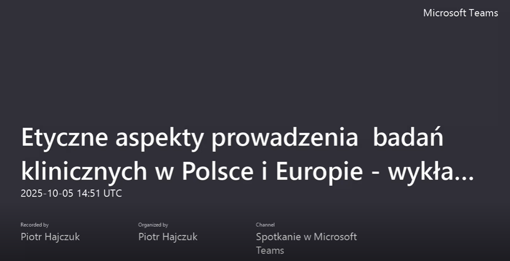 Drugie spotkanie poprowadziła dr  Dorota Krekora-Zając, specjalistka w zakresie prawa medycznego i biobankowania. Uczestnicy poznali aktualne regulacje prawne dotyczące prowadzenia badań klinicznych w Polsce i Unii Europejskiej, z uwzględnieniem wymagań dotyczących świadomej zgody, ochrony danych osobowych oraz roli komisji bioetycznych. Była to pierwsza część cyklu wykładów poświęconych aspektom prawnym.
