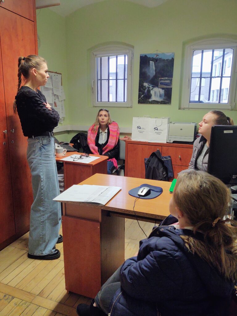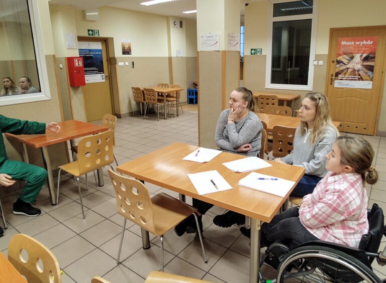 Praca z osobą pozbawioną wolności rozpoczyna się już w pierwszym dniu przekroczenia przez nią murów więzienia. Prawidłowo nawiązana relacja, zebranie odpowiednich informacji jest niezbywalnym warunkiem właściwego doboru skutecznych oddziaływań resocjalizacyjnych. Studentki miały okazję w formule dydaktycznej przeprowadzić symulowaną rozmowę wstępną z osadzonym, jaką muszą przeprowadzić wychowawcy z każdym osadzonym po jego zatrzymaniu w warunkach więziennych. Dzięki temu mogły gromadzić doświadczenia związane z prowadzeniem rozmów ze skazanymi.