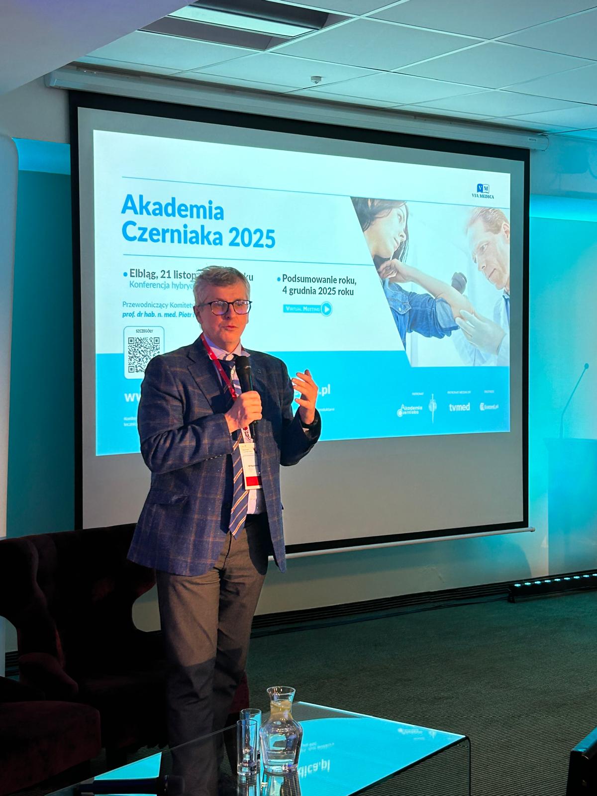 Studenci kierunku Pielęgniarstwo I stopnia, II roku w ramach zajęć „Promocja zdrowia” wzięli udział w konferencji „Akademia Czerniaka”, która odbyła się 21 listopada 2025 r. w Elblągu. Konferencja została zorganizowana pod przewodnictwem prof. dr hab. n. med. Piotra Rutkowskiego, jednego z czołowych specjalistów w dziedzinie leczenia nowotworów skóry.