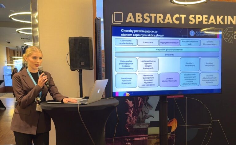 Wystąpienie stanowiło dla naszej studentki cenną okazję do zaprezentowania wyników swojej pracy przed specjalistami z całej Polski, a także do pogłębienia wiedzy w zakresie nowoczesnej diagnostyki i terapii schorzeń dermatologicznych.