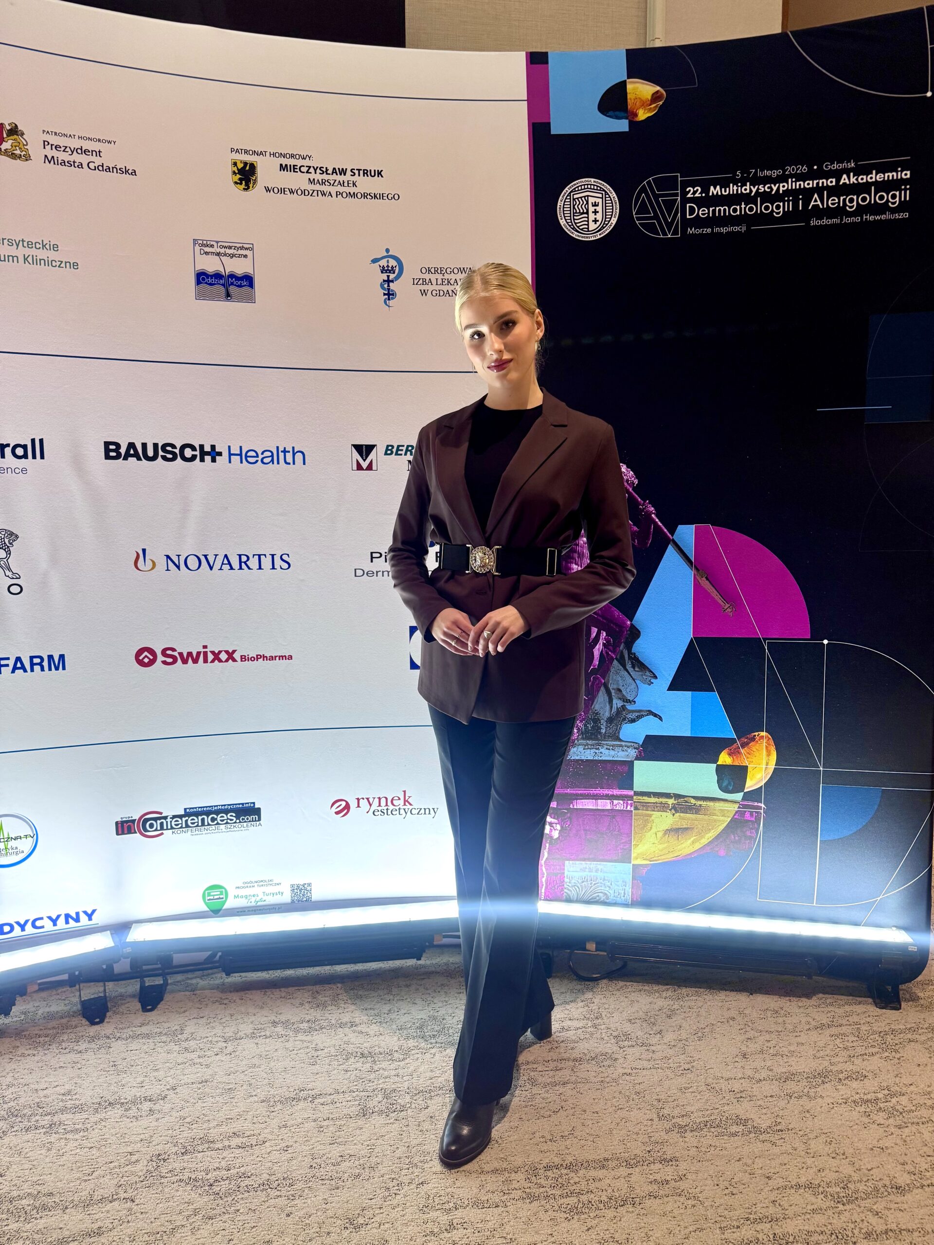 Dnia 5 lutego 2026 r. Pani Emilia Majewska, studentka kierunku lekarskiego, wzięła udział w 22. Multidyscyplinarnej Akademii Dermatologii i Alergologii w Gdańsku – jednym z najważniejszych wydarzeń naukowych w tej dziedzinie.