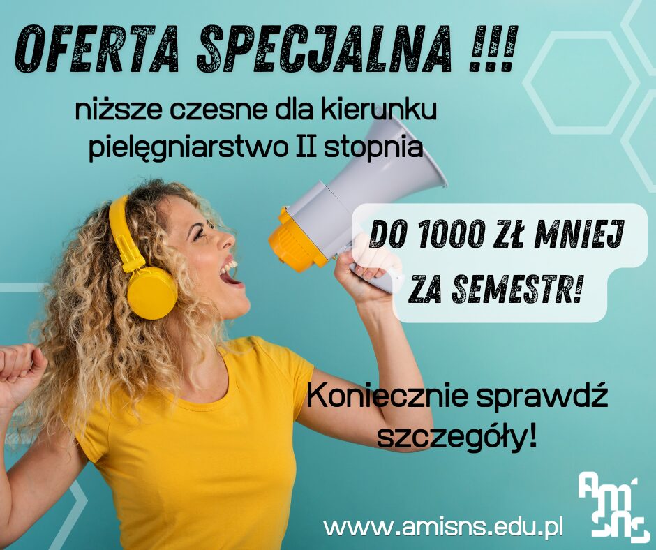 Mamy dla Was dobrą wiadomość! Czesne dla kierunku pielęgniarstwo II stopnia zostało obniżone! To idealna okazja, aby z jeszcze większym zapałem kontynuować naukę i przygotowania do przyszłego zawodu. Zdajemy sobie sprawę, że edukacja jest inwestycją. Mamy nadzieję, że ta zmiana pozytywnie wpłynie na Wasze możliwości kształcenia.